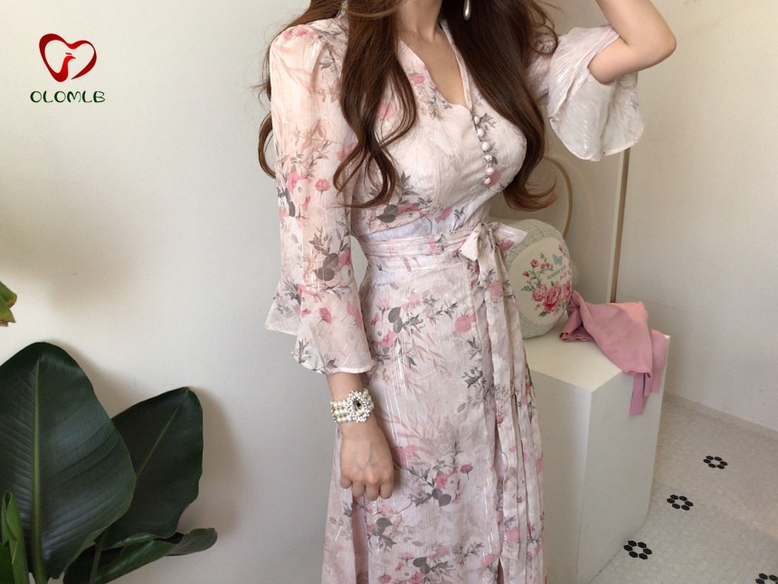 Chic Summer Women Print Midi Chiffon Dress Slim Elegant Bandage Dress Elegant Runway Dresses Vestido