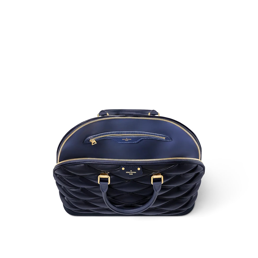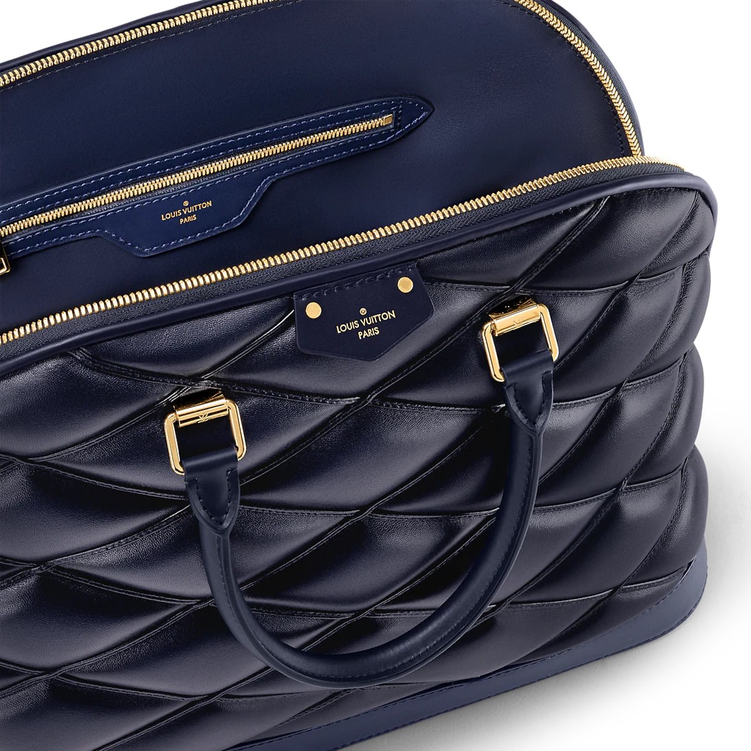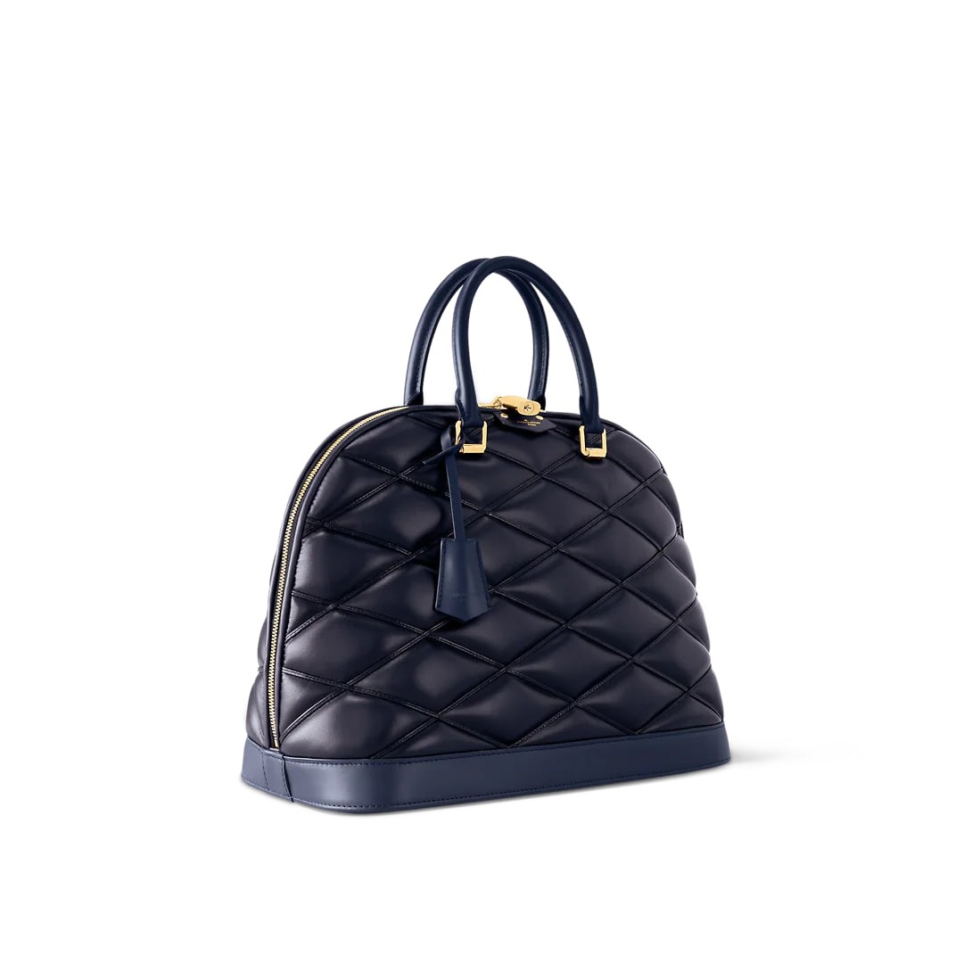 This large Alma bag is a large-size addition to the brand's Alma handbag collection and is crafted from sheep leather for an avant-garde shadow effect. The chic configuration and structured lines release visual impact, and there is plenty of room to carry everyday items. It's topped with a rolled-leather top handle that's perfect for carrying your elbow.